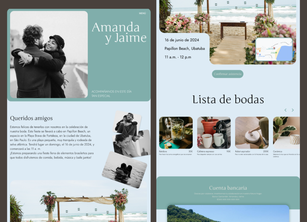 Facilita la comunicación con tus invitados y haz de tu evento un acontecimiento único con nuestras elegantes y funcionales webs de bodas.
